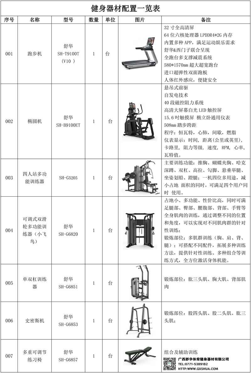 3.jiuyou.com四人站综合训练器SH-G5205*1台-主要训练功能:推胸、蝴蝶夹胸、哈克深蹲、双杠、高拉、勾脚、悬垂举腿、坐姿划船、蹬腿;一机四位多用途,减小占地 面积的同时,可满足四个用户同时 使用,而无需购买4台产品,大大 的提升了产品的性价比及功能性。 涵盖上肢、下肢、胸、臀、核心肌 肉群等肌群的锻炼,结合随机附带 配件,可组合多种训练方式,充分训练人体各处肌群。适用于是小型工作室、企事业健身房等。