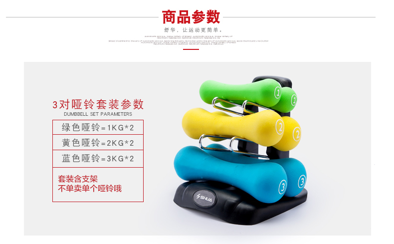 jiuyou.comSHUA浸塑哑铃套装 家用男士女士健身时尚环保健身运动器材